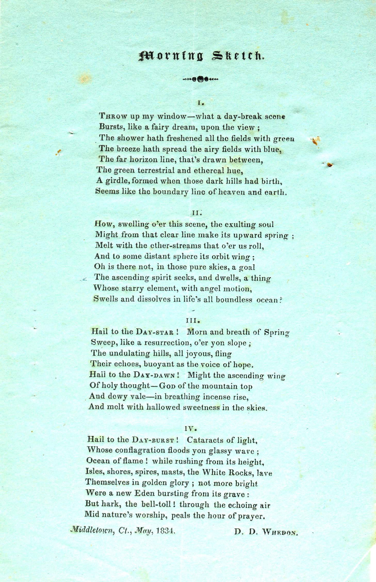 Poem, Morning Sketch. Middletown, CT, May 1834