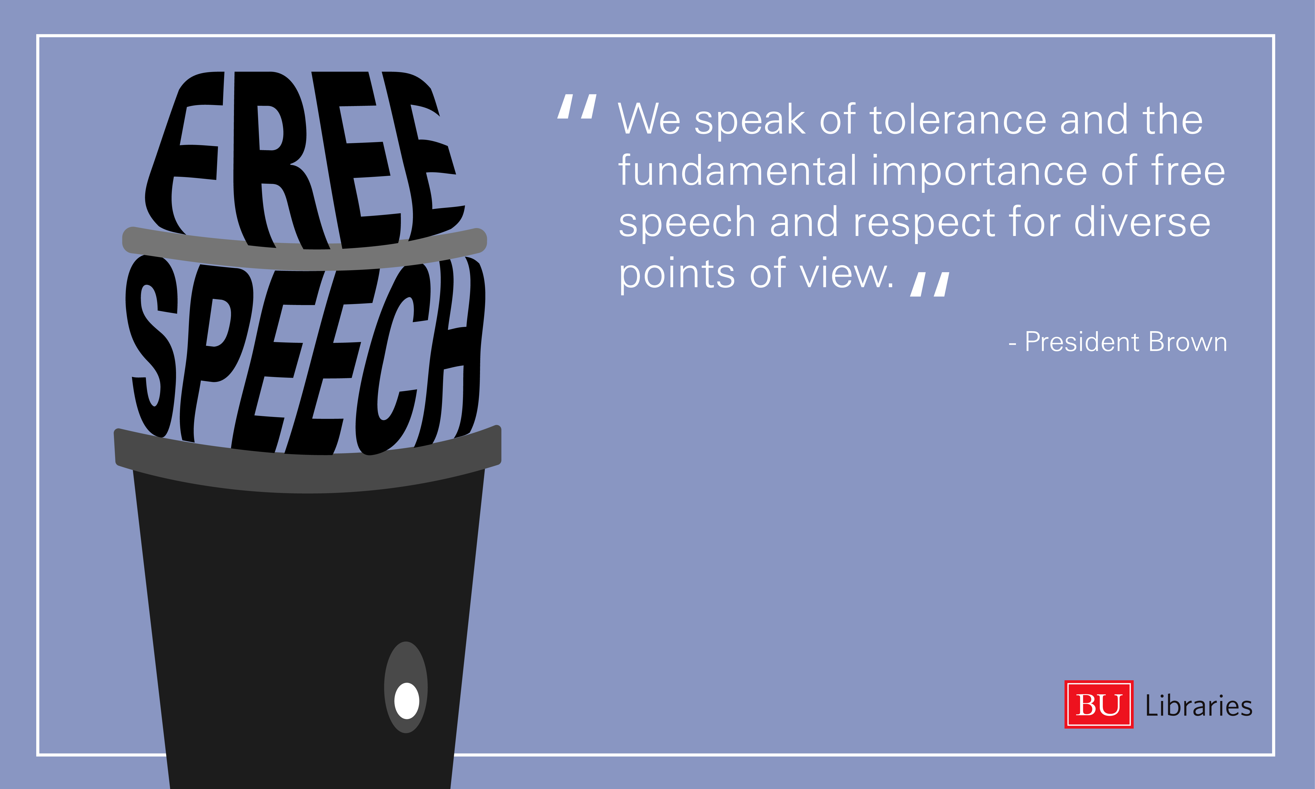 These posters were created to promote free speech for Free Speech Week at Boston University Libraries with a quote from BU President, Robert Brown.