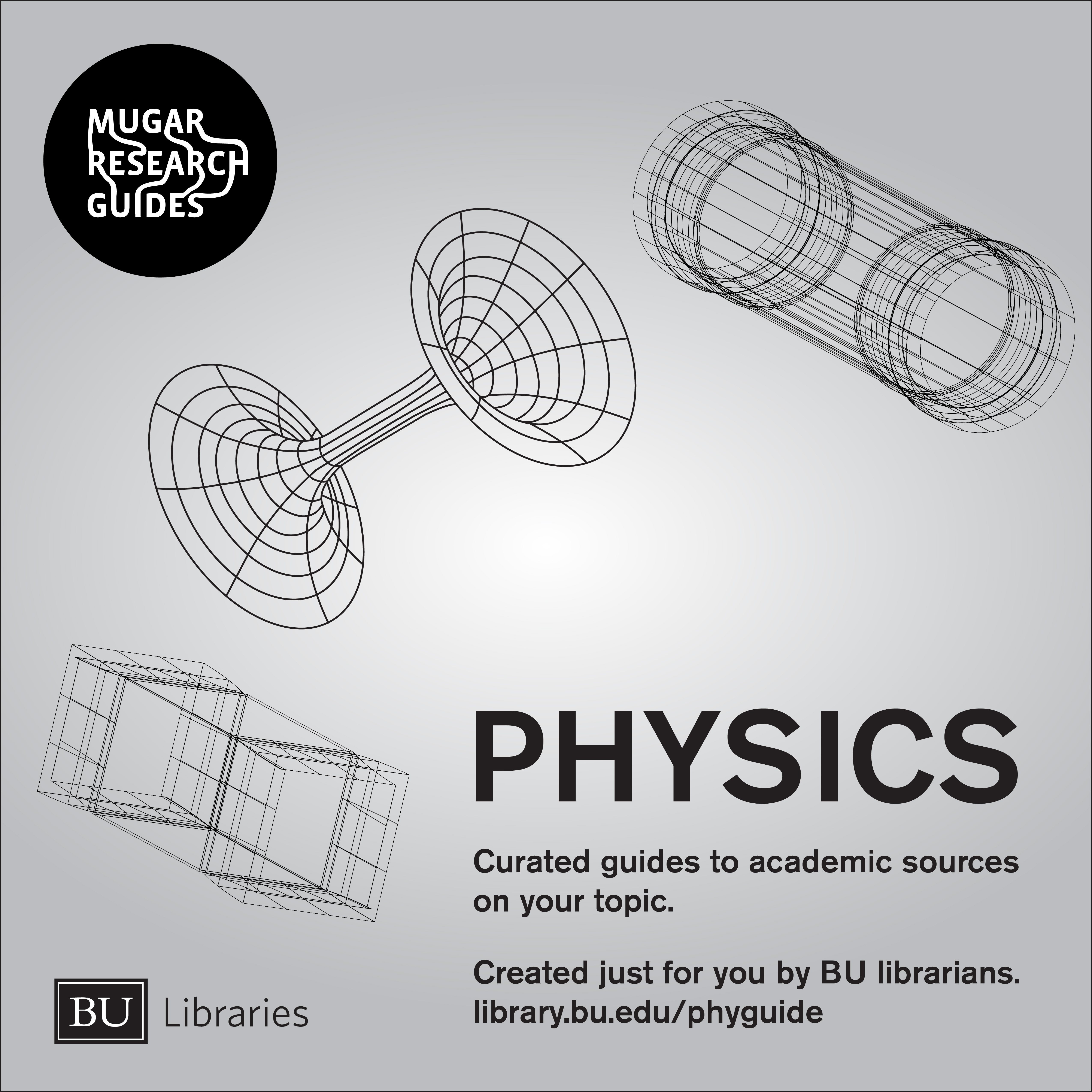Poster and digital materials advertising the Physics Research Guide in the library collection.