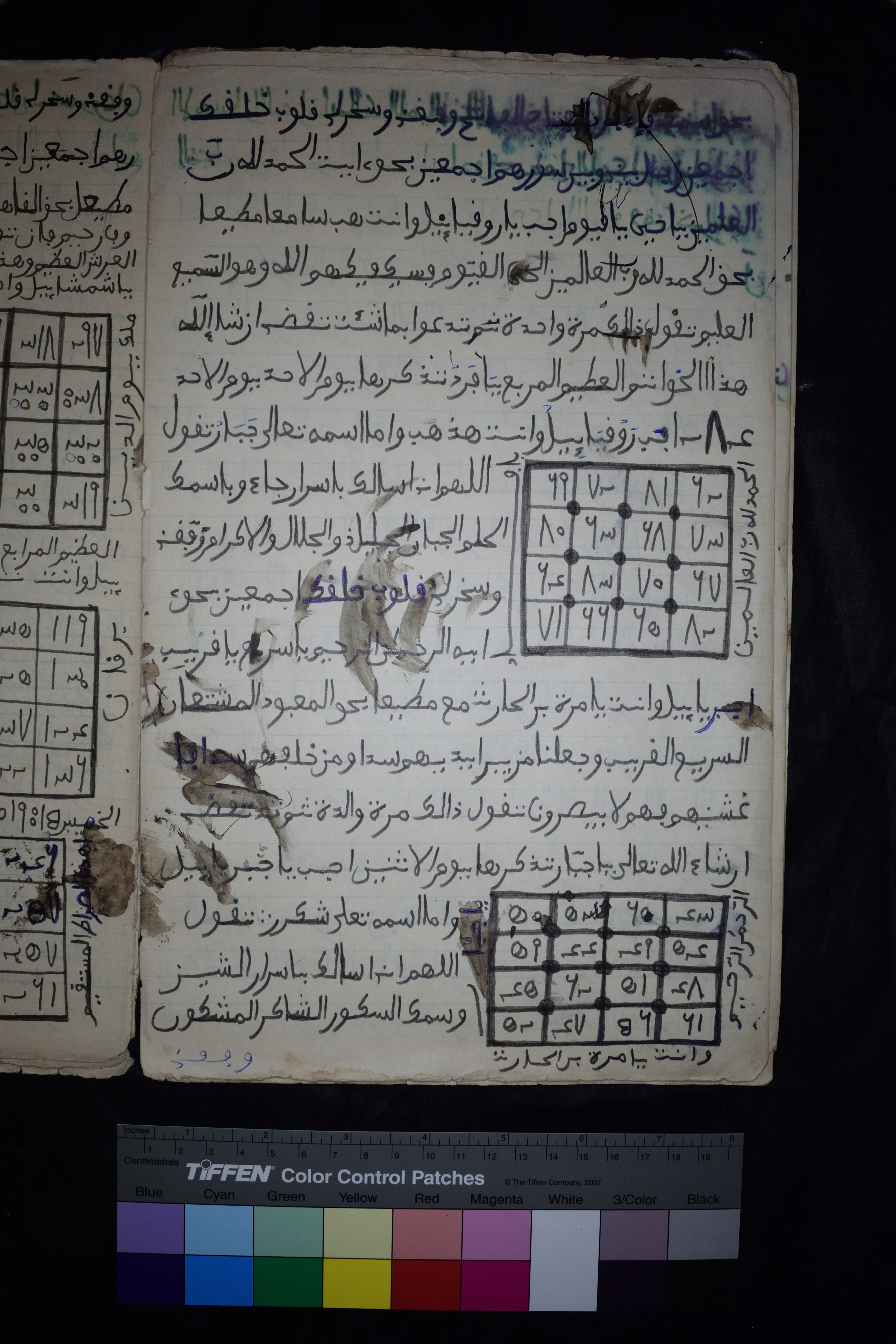 This collection contains five different texts. The first one consists of prayers designed to help people achieve social mobility. This text is a manual of special prayers and techniques for finding solutions to people's social problems, including love. It begins with a short introduction in Mandinka Ajami describing the usefullness of the document. The rest of the document is in Arabic with numerous magic squares and diagrams, Arabic prayers, and names of the Prophet and God. The second, third, and fourth texts are also designed to address people's preoccupations. The content in these three texts include: prayers, esoteric diagrams and letters written in Arabic with instructions on how to use them effectively written in Mandinka Ajami. There is a clear division of labor between Arabic and Ajami writing in these texts. The Arabic prayers, esoteric diagrams, and unmodified letters are treated as the potent text, while the Mandinka Ajami writings are used for explanatory purposes, (i.e. used to explain to Mandinka Ajami literates how to use the potent Arabic prayers, figures, and unmodified letters). The first four texts are written by the late Imam Keba Cisse and, the fifth text is a letter in Mandinka Ajami written on tracing paper by Batuma Cisse. Batuma Cisse, who was then living in Dakar with his family, wrote the letter to his brother Imam Keba Cisse, the father of the manuscript owner. In the letter, Batuma updates his brother on his life and that of his family in Dakar, the capital of Senegal. The manuscript was digitized in the home of the owner (Abdou Khadre Cisse) in the neighborhood of Kandialang in Ziguinchor, Senegal.