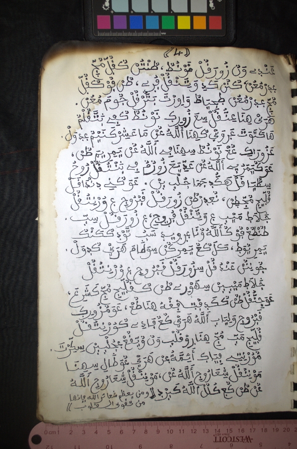 The material talks about Islamic Laws and recommendations, and preches. The material was written in Conakry, Guinea in 1967. The material was digitized in Dakar, Senegal. The video contains El hadj Mouhamadou Sall sharing biographical information and details related to the acquisition and contents of these Ajami materials.
