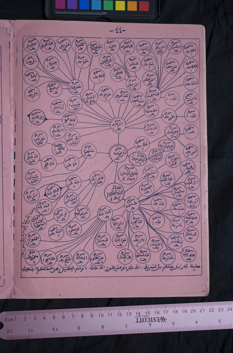 This manuscript is a genealogy describing the descendants of Mame Maharam Mbacke, the ancestor of Cheikh Ahmadou Bamba, who lived in the 18th century. The author describes the methods he used to collect the data needed for the work, noting that most of the information he used was based on the work of Serigne Mouhammadou Lamine Deme, one of the most renowned Murid leaders and a close follower of Cheikh Ahmadou Bamba. The document provides a genealogy of Mame Maharam Mbacke, his children (including Ahmadou Farimata, Mame Ahmadou Soxna Bousso, Mame Ibrahima Awa Niang, Mame Said Soxna Bousso, Mame Balla Aicha, Mame Yalla Aissa, among others). The document is useful for historians interested in the genealogy and ethnic mixing (between Wolof and Pulaar) in the Mbacke family from the 18th to the 20th century.