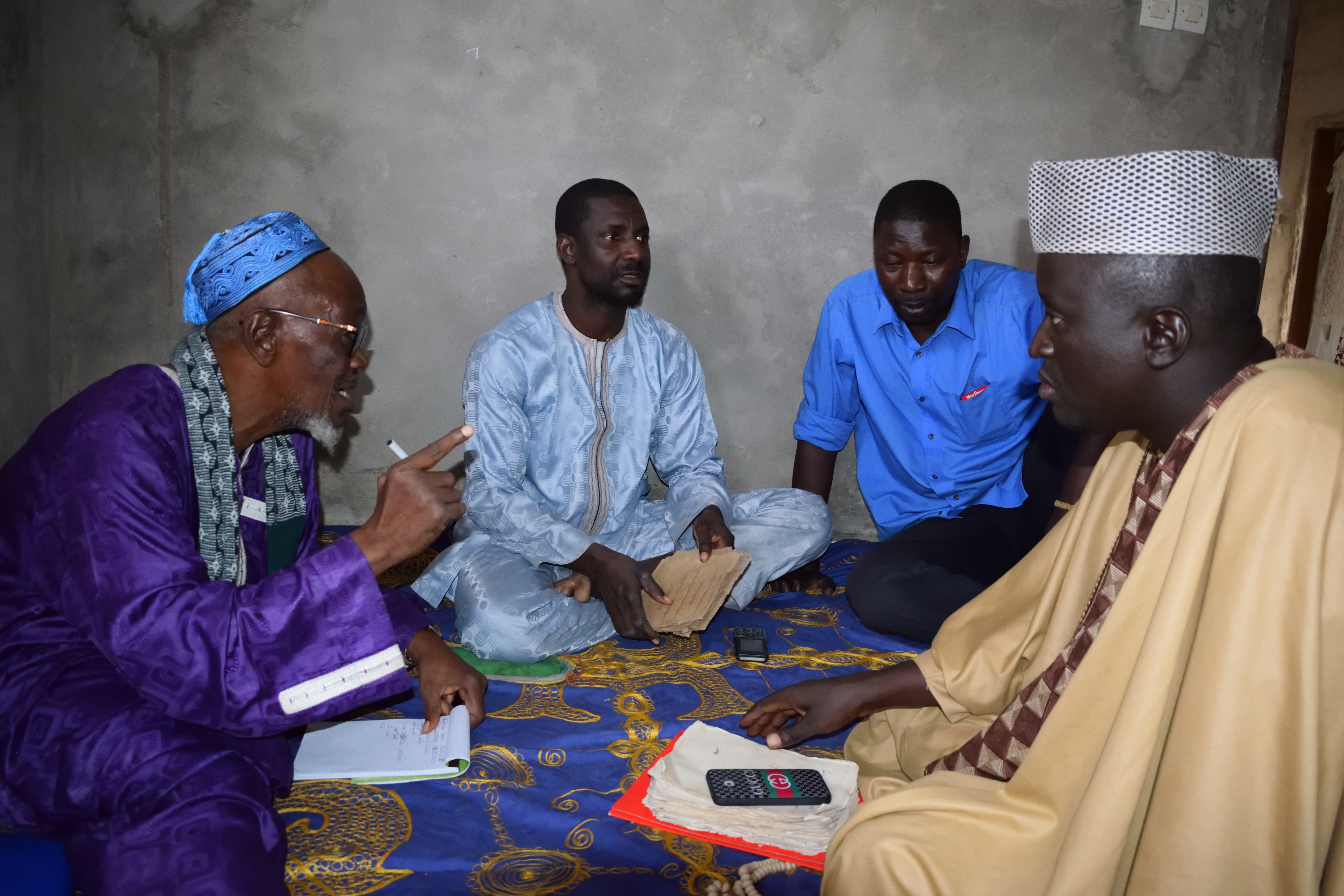 Images of manuscript owner Fakeba Toure, his family, the EAP 1042 fieldwork team (Fallou Ngom and Ibrahima Yaffa), and the community of Bounkiling, Sedhiou, Senegal, for the manuscript digitization work done in December 2018.